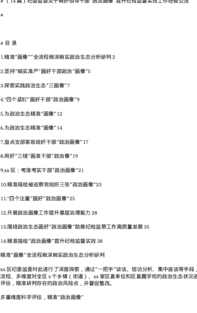 汇编:纪委监委关于做好领导干部“政治画像”提升纪检监督实效工作经验交流发言14篇