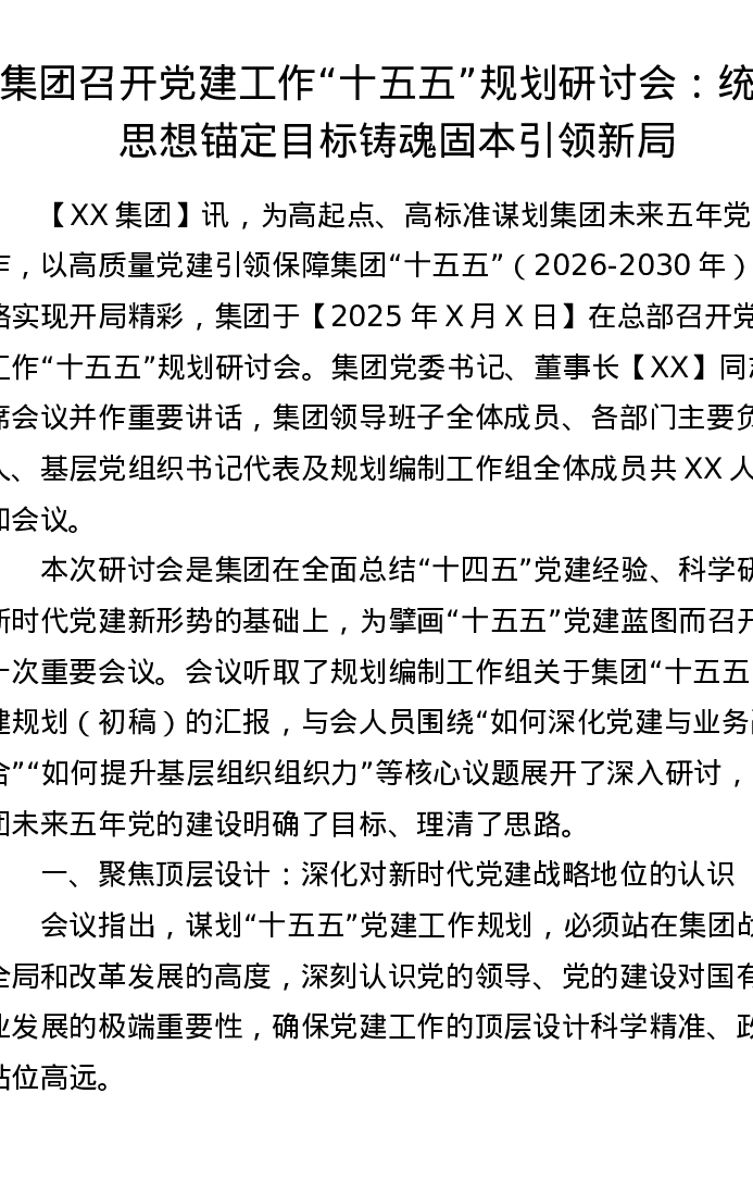 集团召开党建工作“十五五”规划研讨会发言:统一思想锚定目标 铸魂固本引领新局