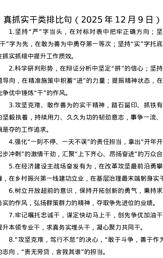 真抓实干类排比句(2025年12月9日)