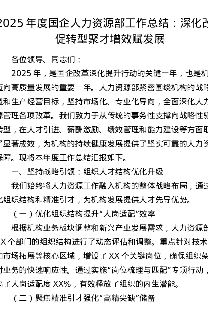 2025年度国企人力资源部工作总结:深化改革促转型 聚才增效赋发展