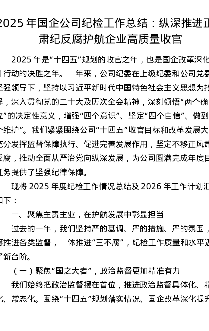 2025年国企公司纪检工作总结:纵深推进正风肃纪反腐 护航企业高质量收官