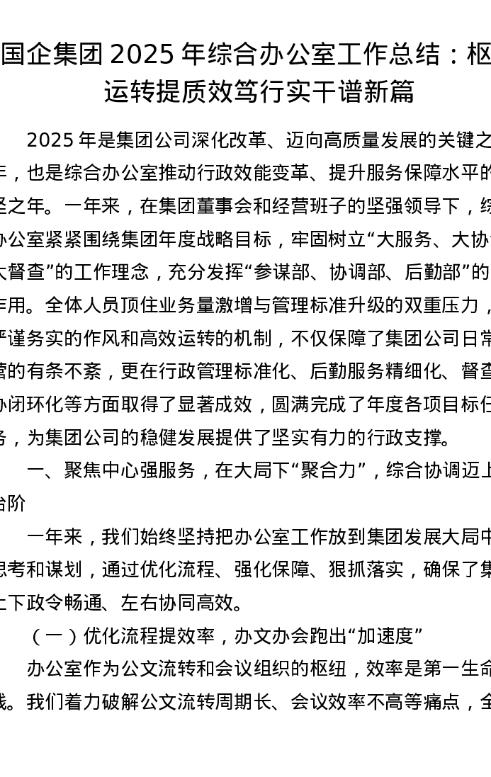 国企集团2025年综合办公室工作总结:枢纽运转提质效 笃行实干谱新篇