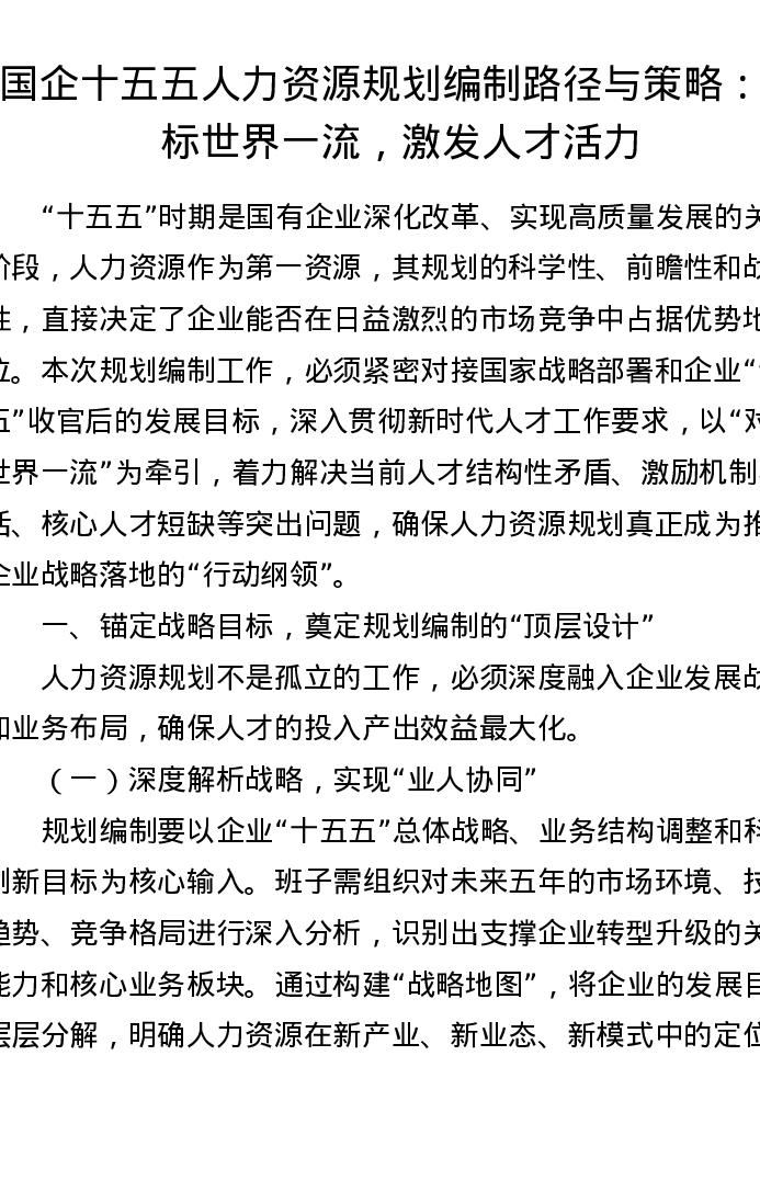 国企十五五人力资源规划编制路径与策略:对标世界一流,激发人才活力