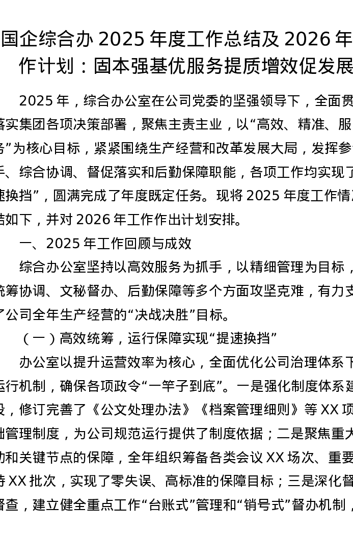 国企综合办2025年度工作总结及2026年工作计划:固本强基优服务 提质增效促发展