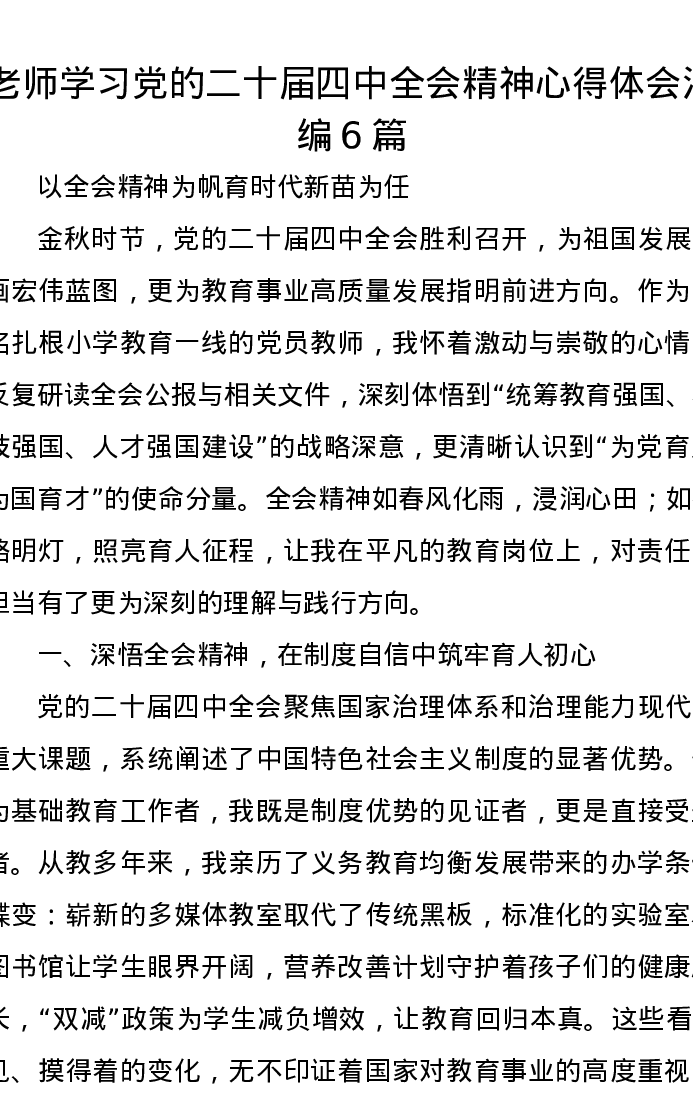老师学习党的二十届四中全会精神心得体会汇编6篇