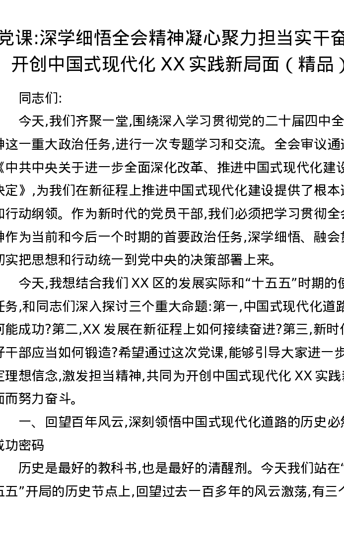 党课讲稿:深学细悟全会精神凝心聚力担当实干奋力开创中国式现代化XX实践新局面