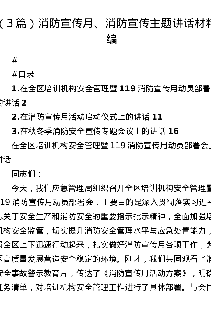 汇编:消防宣传月、消防宣传主题讲话材料3篇
