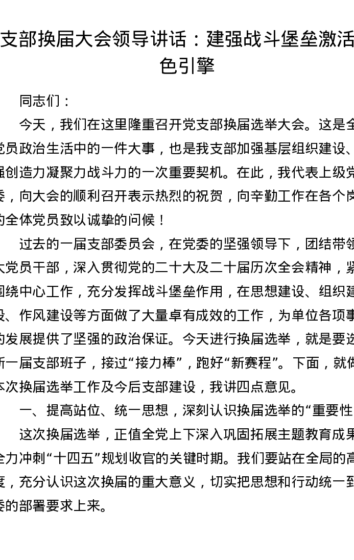 支部换届大会领导讲话:建强战斗堡垒 激活红色引擎