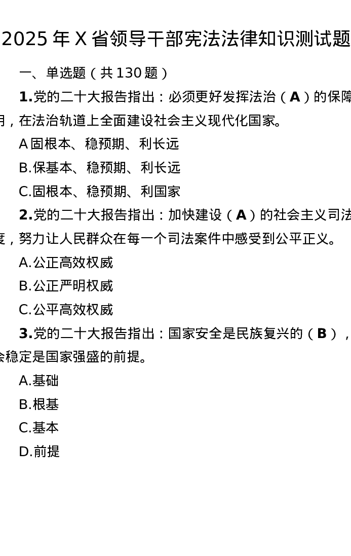 2025年X省领导干部宪法法律知识测试题库