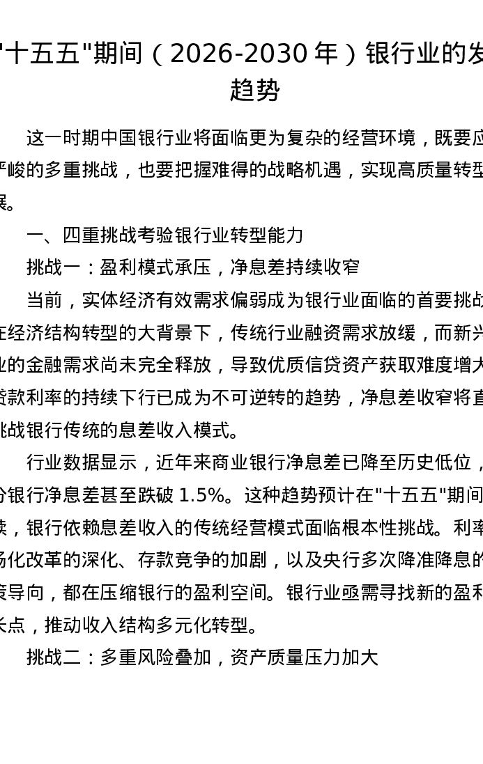 “十五五”期间(2026-2030年)银行业的发展趋势