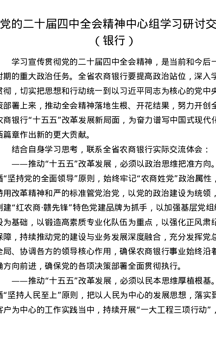党的二十届四中全会精神中心组学习研讨交流发言(银行)