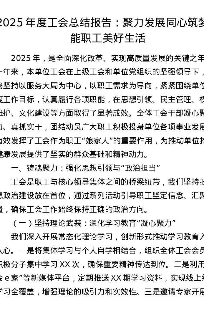 2025年度工会总结报告:聚力发展同心筑梦 赋能职工美好生活