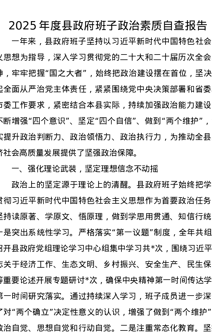 2025年度县政府班子政治素质自查报告