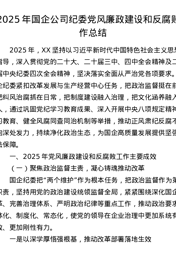 2025年国企公司纪委党风廉政建设和反腐败工作总结
