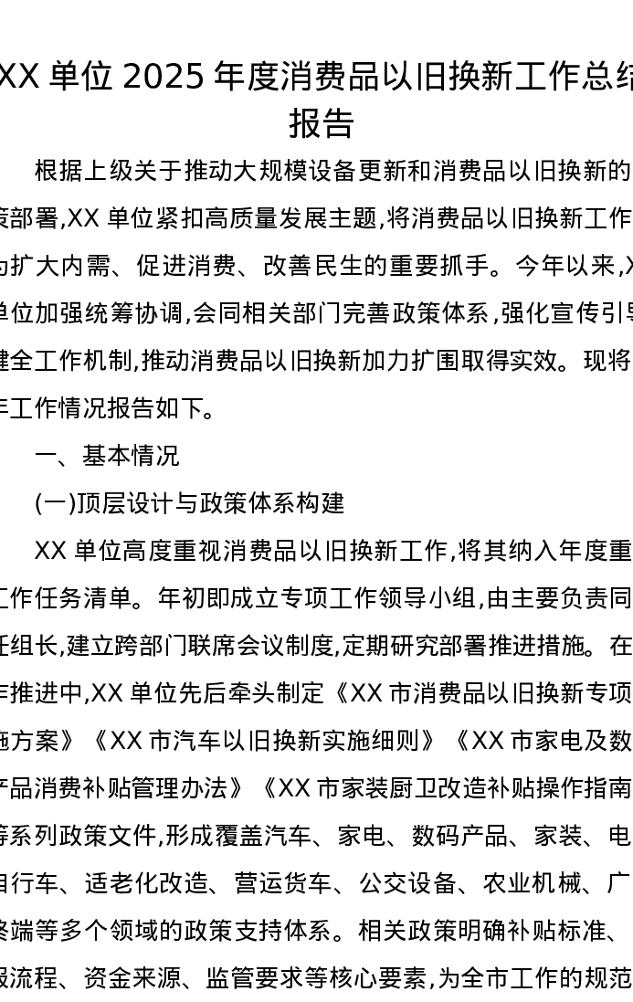 XX单位2025年度消费品以旧换新工作总结报告