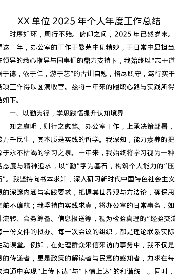 XX单位2025年个人年度工作总结