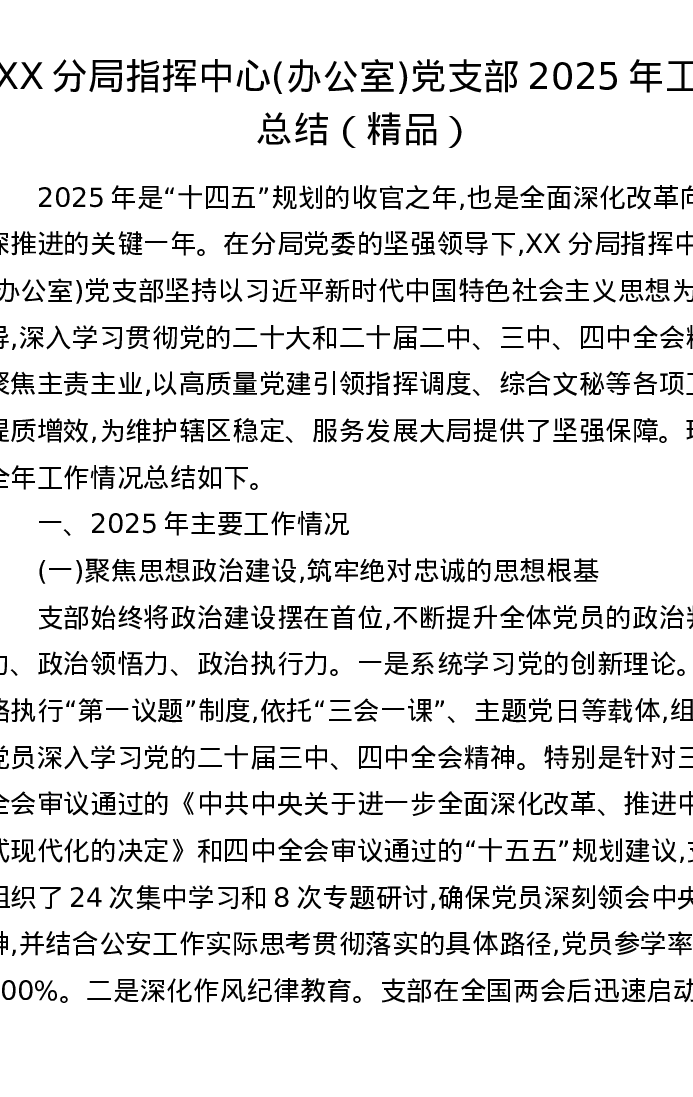 XX分局指挥中心(办公室)党支部2025年工作总结