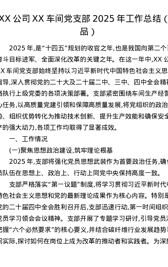 XX公司XX车间党支部2025年工作总结