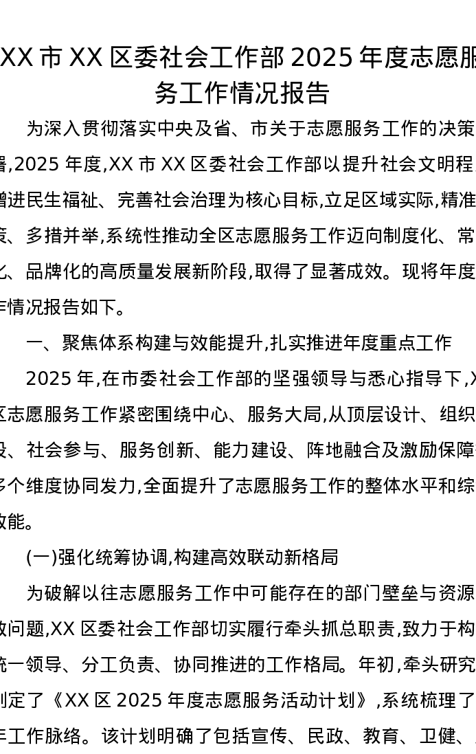 XX市XX区委社会工作部2025年度志愿服务工作情况报告