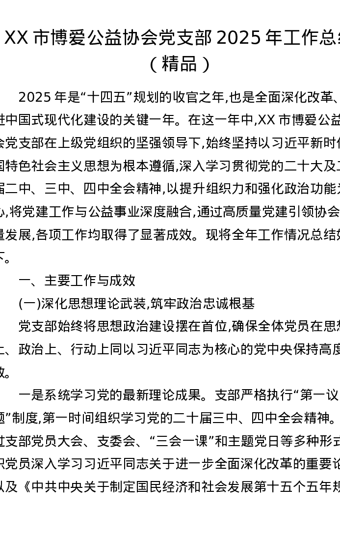 XX市博爱公益协会党支部2025年工作总结