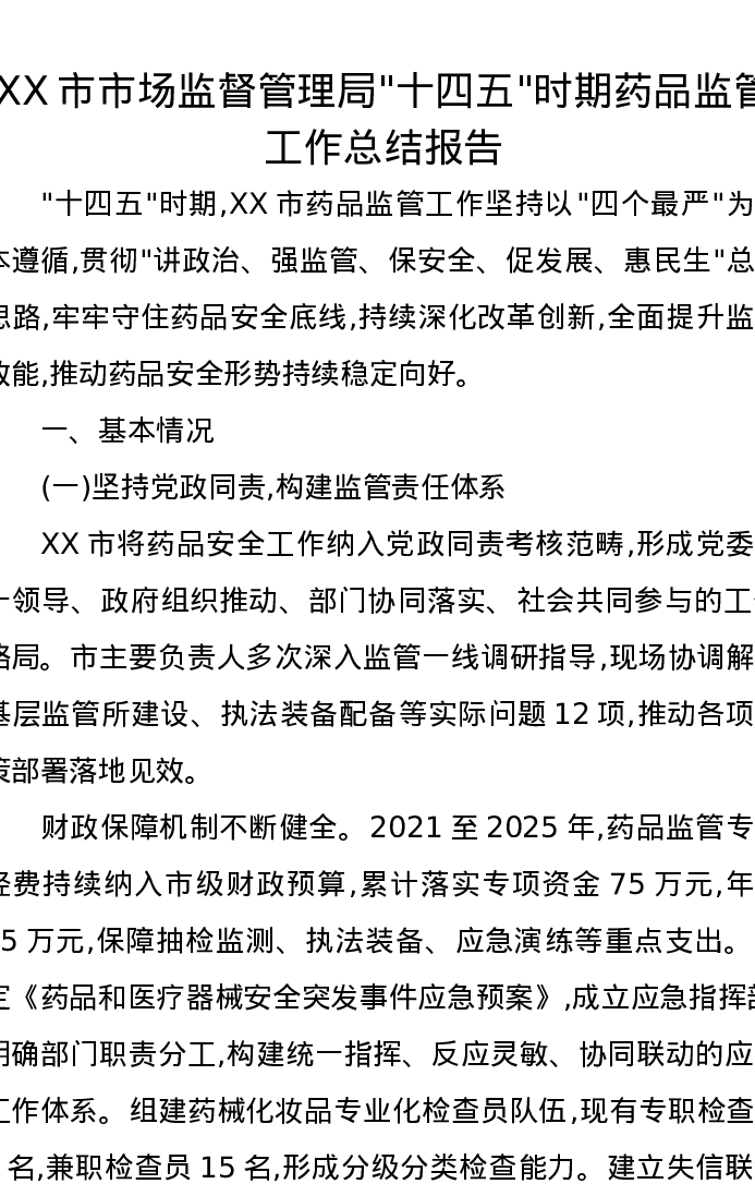 XX市市场监督管理局十四五时期药品监管工作总结报告