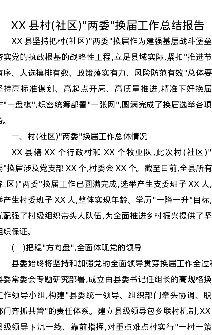 XX县村(社区)两委换届工作总结报告