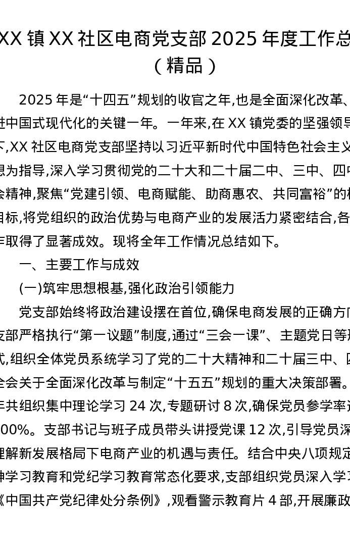 XX镇XX社区电商党支部2025年度工作总结
