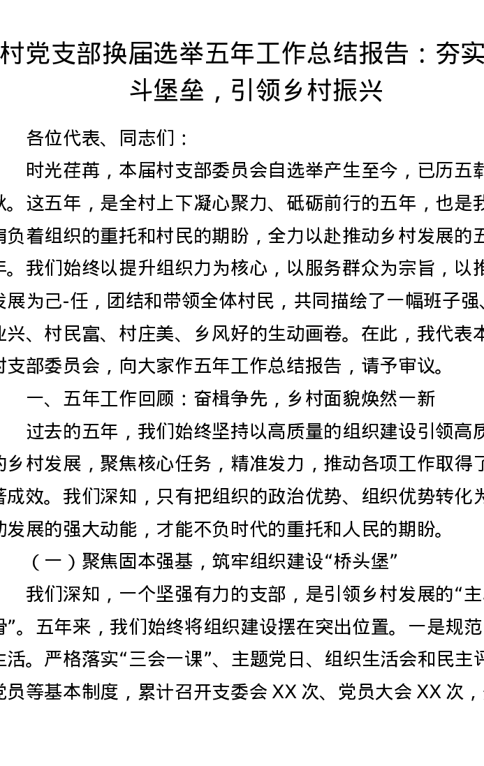 村党支部换届选举五年工作总结报告:夯实战斗堡垒,引领乡村振兴