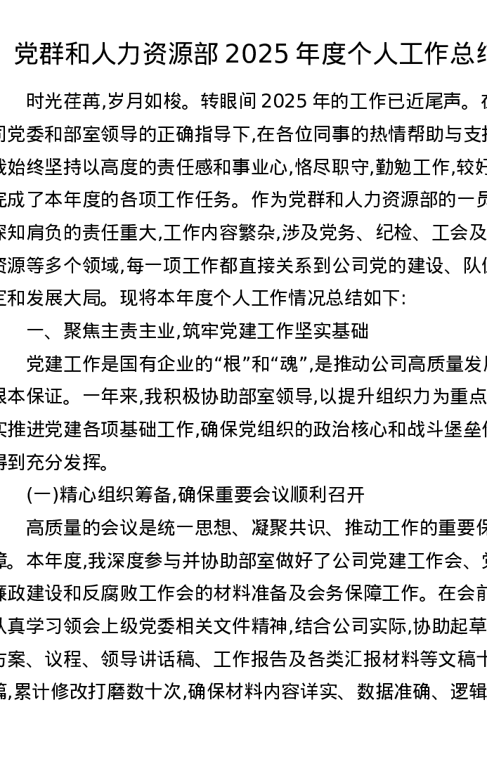党群和人力资源部2025年度个人工作总结
