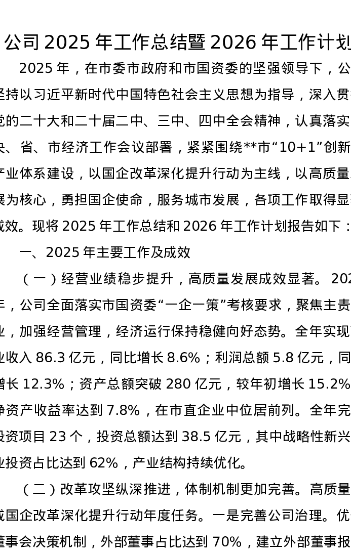 公司2025年工作总结暨2026年工作计划
