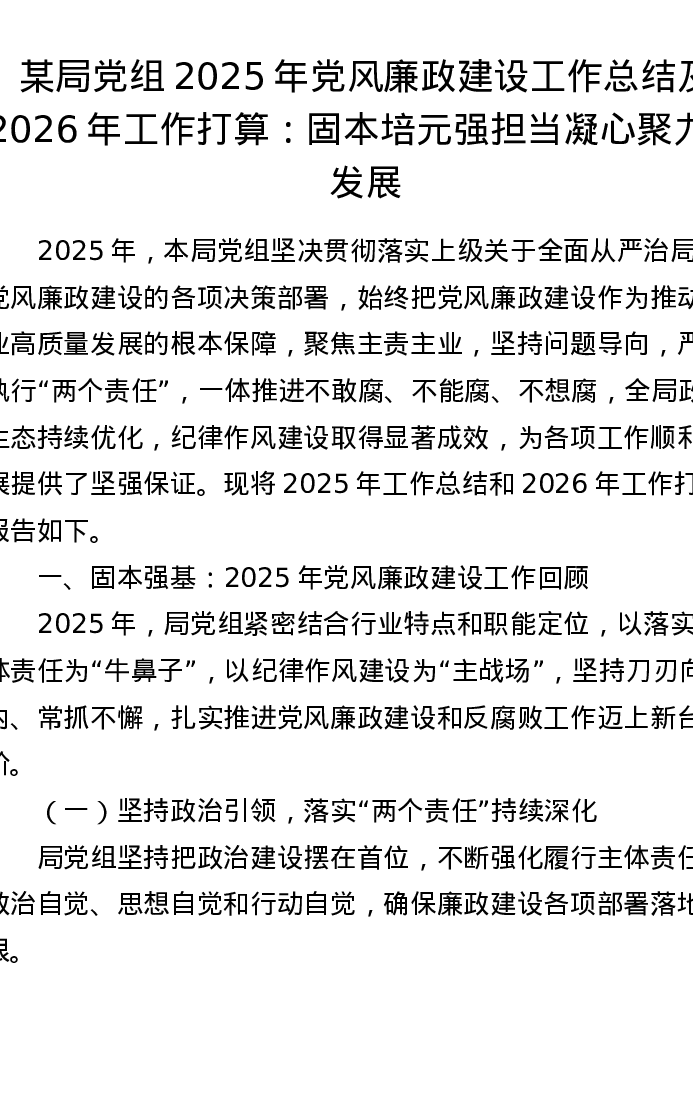 某局党组2025年党风廉政建设工作总结及2026年工作打算:固本培元强担当 凝心聚力促发展