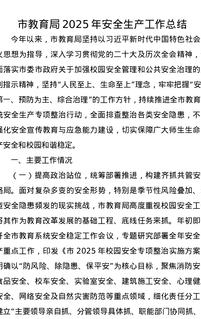 市教育局2025年安全生产工作总结