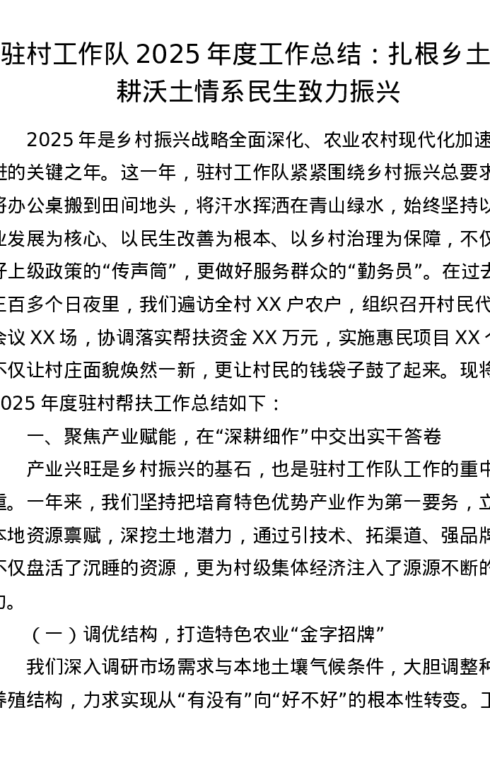 驻村工作队2025年度工作总结:扎根乡土深耕沃土 情系民生致力振兴