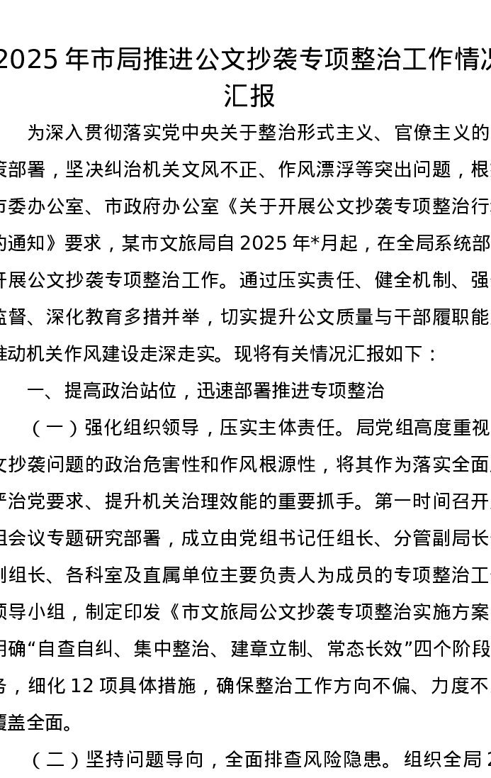 2025年市局推进公文抄袭专项整治工作情况汇报