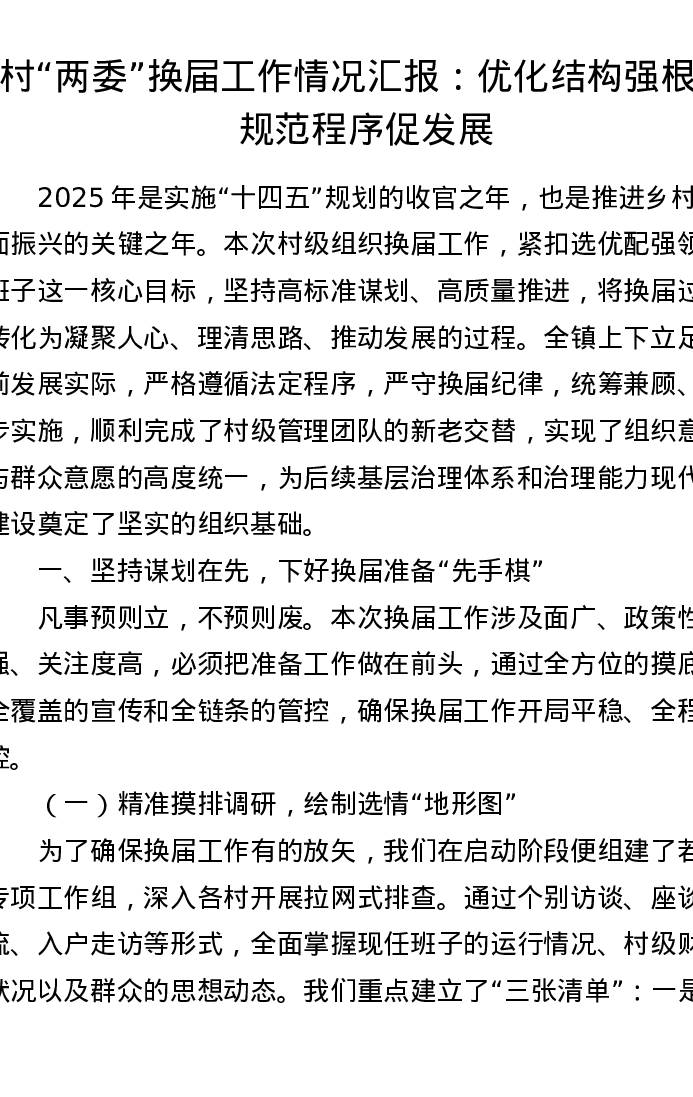 村“两委”换届工作情况汇报:优化结构强根基 规范程序促发展