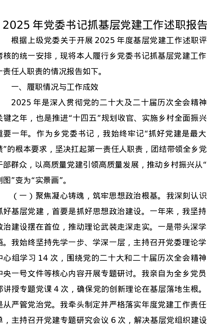 2025年党委书记抓基层党建工作述职报告