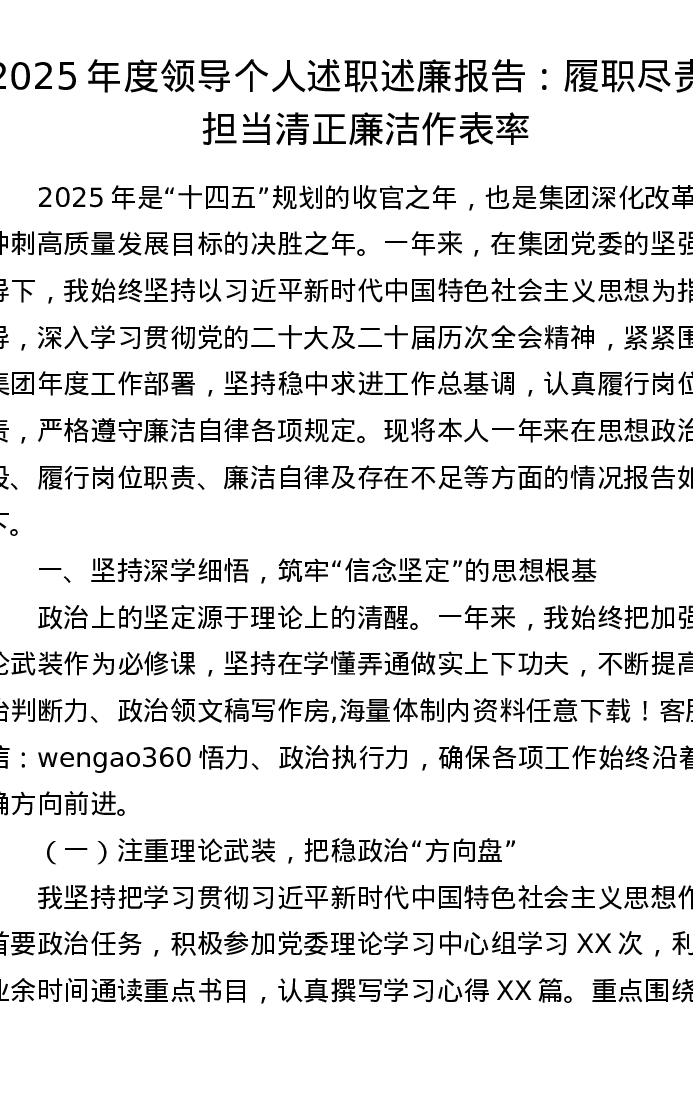 2025年度领导个人述职述廉报告:履职尽责显担当 清正廉洁作表率