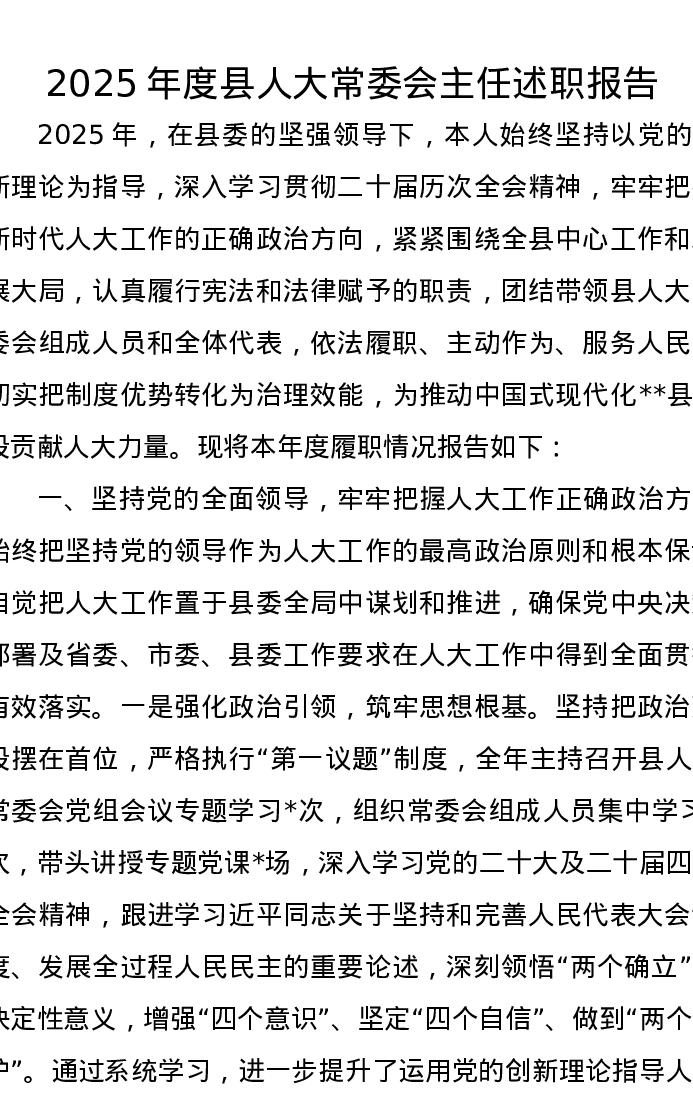 2025年度县人大常委会主任述职报告