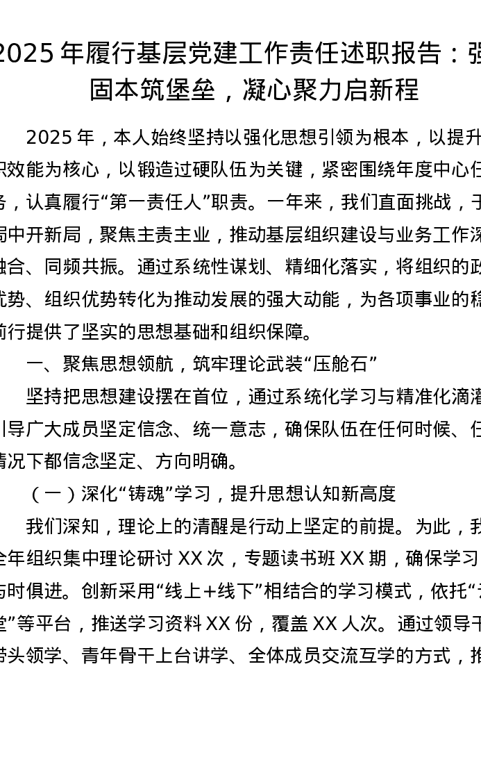 2025年履行基层党建工作责任述职报告:强基固本筑堡垒,凝心聚力启新程