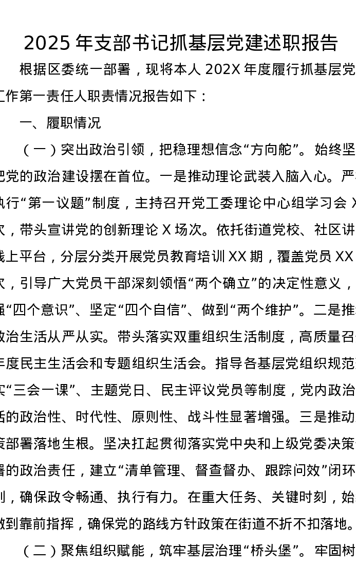 2025年支部书记抓基层党建述职报告
