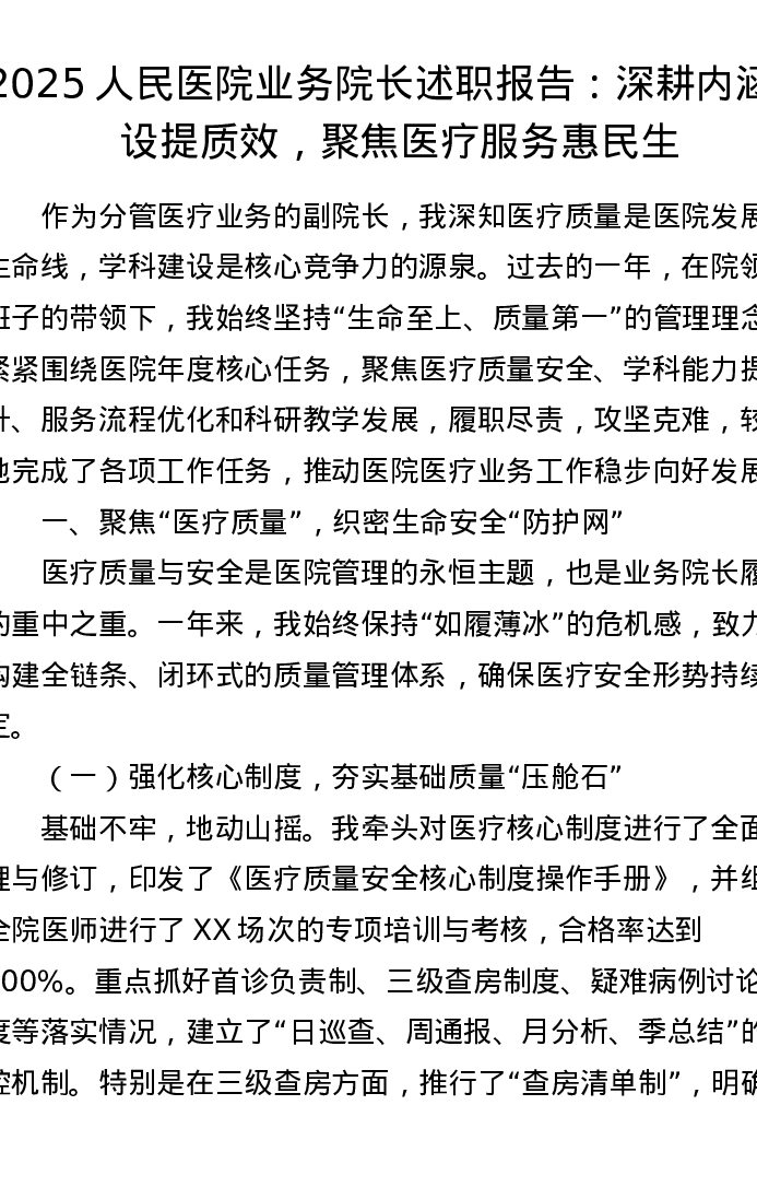 2025人民医院业务院长述职报告:深耕内涵建设提质效,聚焦医疗服务惠民生