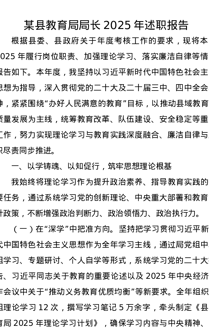 某县教育局局长2025年述职报告