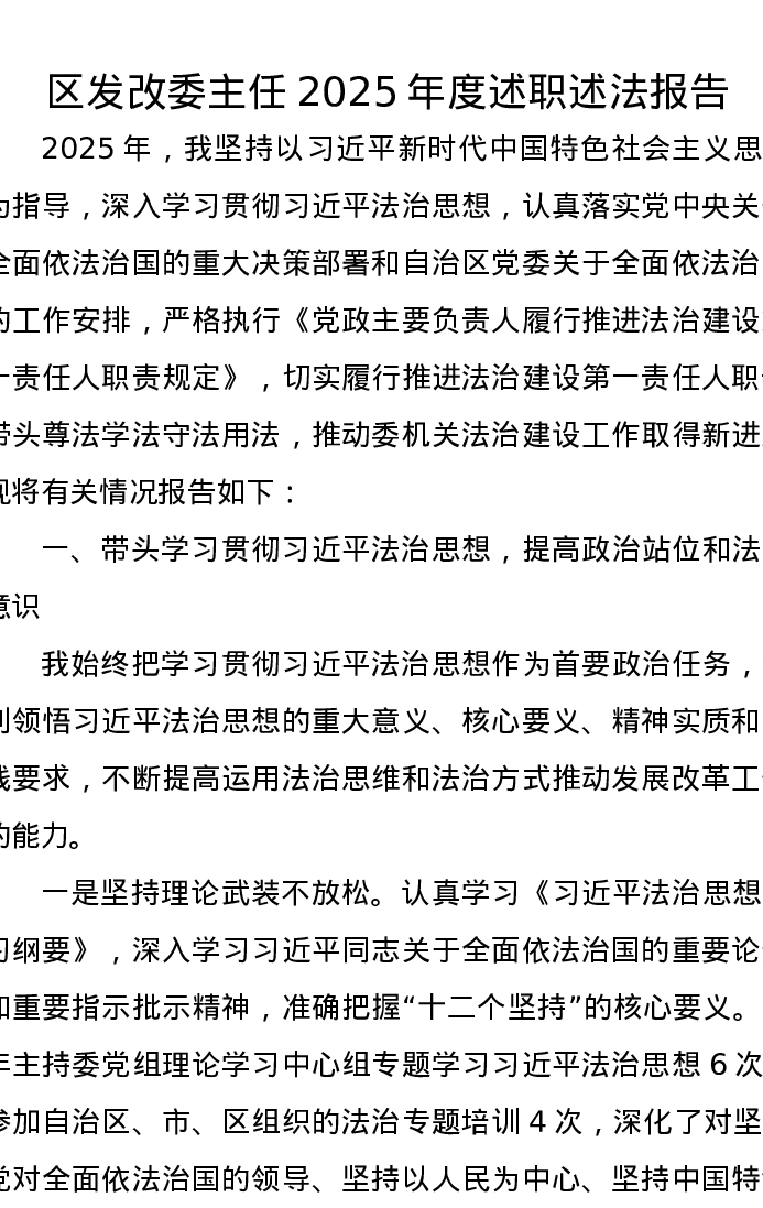 区发改委主任2025年度述职述法报告