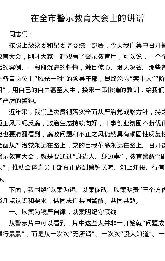 在全市警示教育大会上的讲话(3208字)