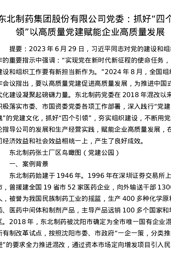 东北制药集团股份有限公司党委:抓好“四个引领” 以高质量党建赋能企业高质量发展