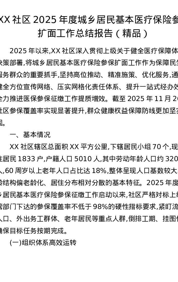 XX社区2025年度城乡居民基本医疗保险参保扩面工作总结报告