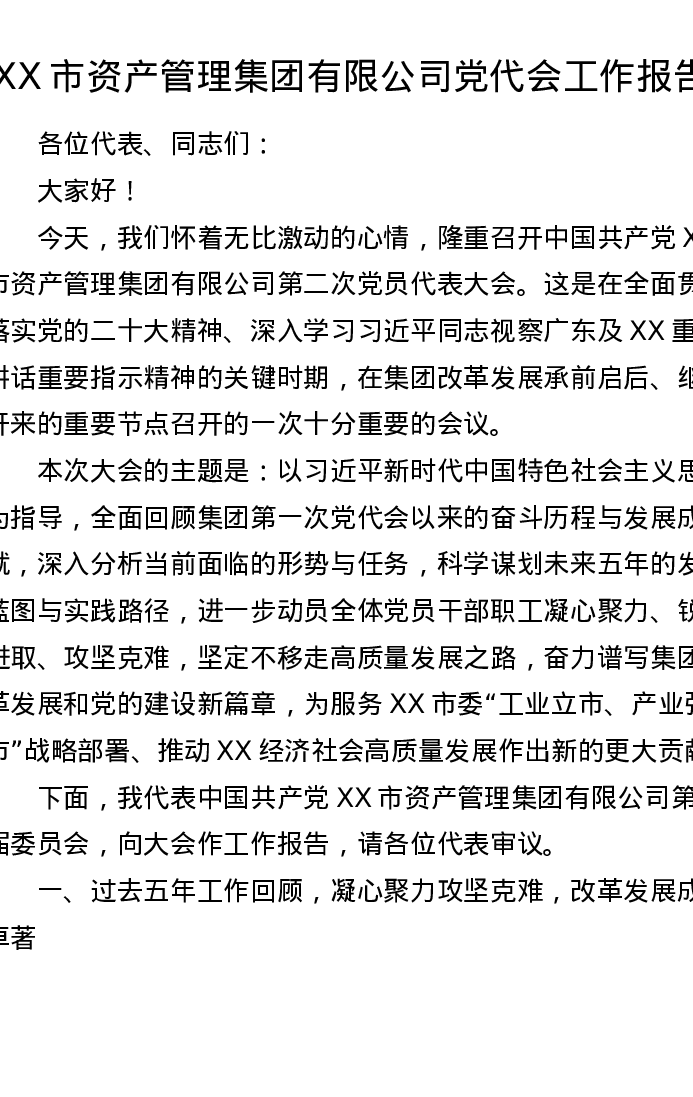 XX市资产管理集团有限公司党代会工作报告3