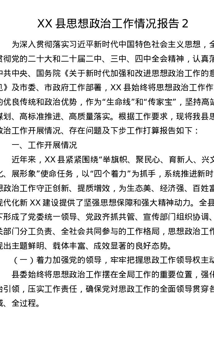 XX县思想政治工作情况报告2