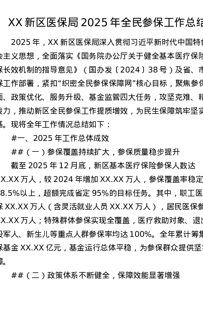 XX新区医保局2025年全民参保工作总结(4804字)