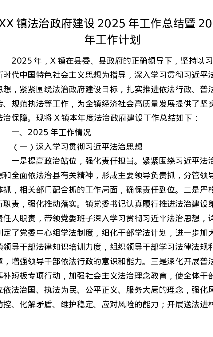 XX镇法治政府建设2025年工作总结暨2026年工作计划